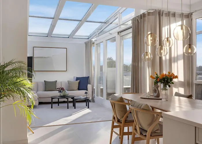 Modernes Ostsee Luxus-Penthouse Meerblick apartment offers a fully-fitted kitchen with an oven and a dishwasher for the preparation of your own meals. Lubeck airport is at a 32-minute driving distance, and Seeschloesschen bus stop is not far from Modernes Ostsee Luxus-Penthouse Meerblick apartment. The property also includes a patio.